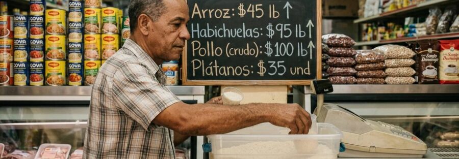 Uno de los puntos más alarmantes del análisis radica en la magnitud porcentual de los incrementos en productos que representan el núcleo del consumo diario. El arroz, las habichuelas, el pollo y el plátano han experimentado alzas que oscilan entre el 75% y el 100% en comparación con periodos previos. Por ejemplo, el arroz ha pasado de un promedio de RD$25 a RD$45 la libra, mientras que el pollo, la principal proteína de las mesas dominicanas, ha escalado de los RD$45 hasta alcanzar los RD$100. Estos datos no son meras cifras estadísticas; representan una erosión directa de la capacidad adquisitiva del ciudadano promedio.