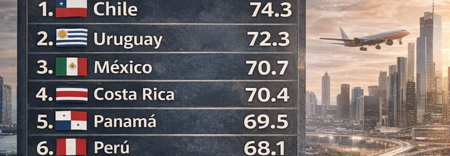 En la cima de este ranking se posiciona Chile (74.3), reafirmando su estatus como la economía más abierta de la región gracias a su extensa red de tratados de libre comercio y una infraestructura logística orientada a la exportación. Le sigue de cerca Uruguay (72.3), un país que ha sabido capitalizar su estabilidad institucional para atraer servicios globales y talento internacional, consolidándose como un hub tecnológico y de servicios de alto valor agregado en el Cono Sur.
