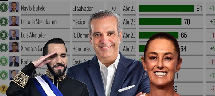 Un nuevo estudio de la firma dominicana SONDEOS marca un hito en la región al publicar por primera vez un “ranking de presidentes latinoamericanos mejor valorados”. La consultora —que ya tenía experiencia midiendo la imagen pública de ministros, legisladores, alcaldes y directivos empresariales— amplía su alcance al más alto nivel del poder político.