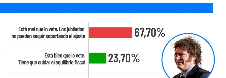 El veto a la suba de jubilaciones golpea la imagen de Milei