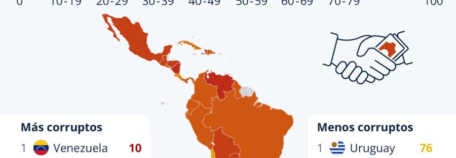 Chile se ubica en el segundo puesto regional con 63 puntos, seguido por Costa Rica, que obtuvo 58 puntos. En el otro extremo, Venezuela se posiciona como el país con el mayor nivel de corrupción percibida en la región, con solo 10 puntos, seguido de Nicaragua (14 puntos) y Haití (16 puntos).