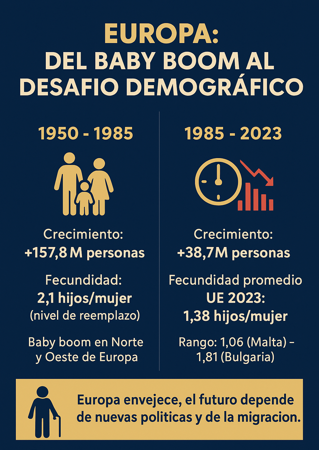 Entre 1950 y 1985, Europa experimentó un notable crecimiento demográfico de 157,8 millones de personas, impulsado en parte por la recuperación económica de la posguerra y un baby boom en países del norte y occidente del continente. Sin embargo, desde mediados de los años ochenta, la tendencia cambió drásticamente: en…