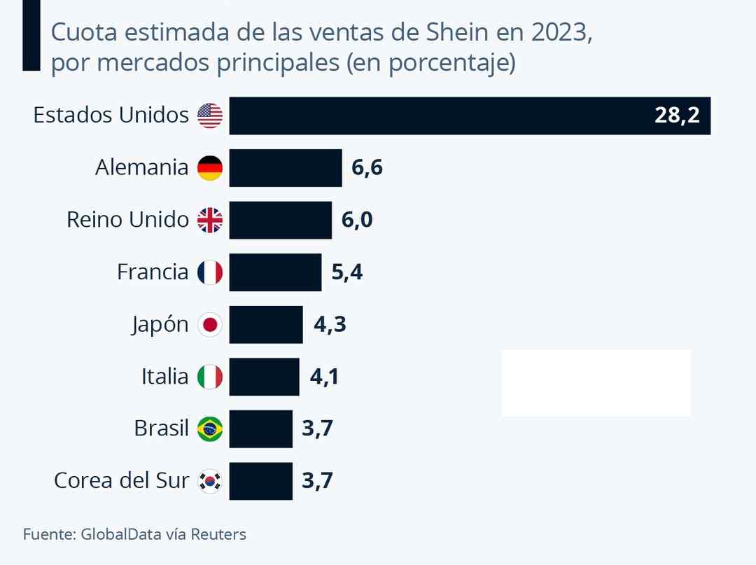 Shein, el gigante del fast fashion, ha consolidado su presencia global con un enfoque innovador en la producción y venta de ropa a precios bajos. Según estimaciones de GlobalData, publicadas por Reuters, Estados Unidos fue su mayor mercado en 2023, representando un 28% de sus ventas. Otros mercados clave incluyen…