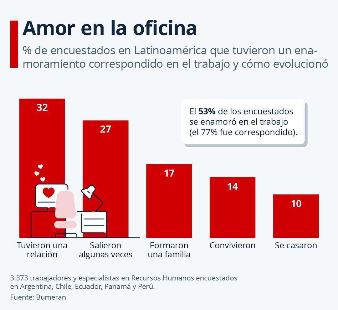 Entre reuniones, correos y pausas para el café, el trabajo no solo es un espacio de productividad, sino también un escenario donde pueden surgir conexiones personales. Un estudio de Bumeran en Argentina, Chile, Ecuador, Panamá y Perú reveló que el 53% de los trabajadores encuestados ha experimentado el amor en…